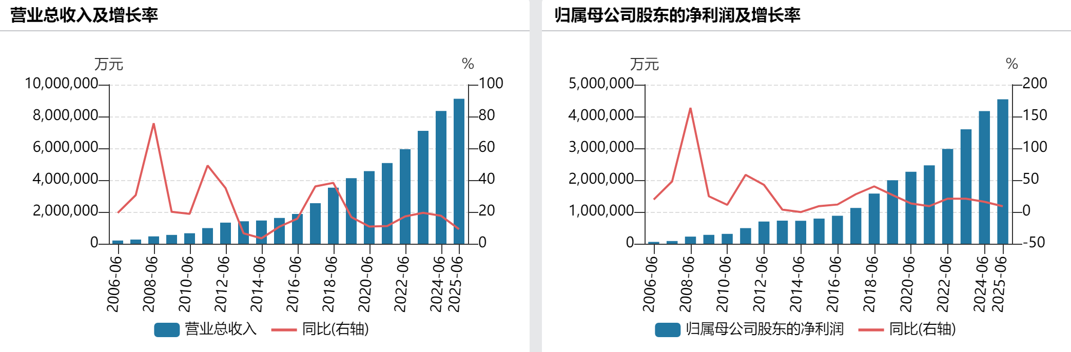 五粮液上半年营收增4.19%,净利润增2.28%。公司半年报称,经营业绩继续保持稳健增长。据Wind数据,五粮液上半年营收和净利润均创历史新高,但增速均降至个位数。此前,从2016年至2024年,五粮液上半年营收和净利润均保持着两位数增长。