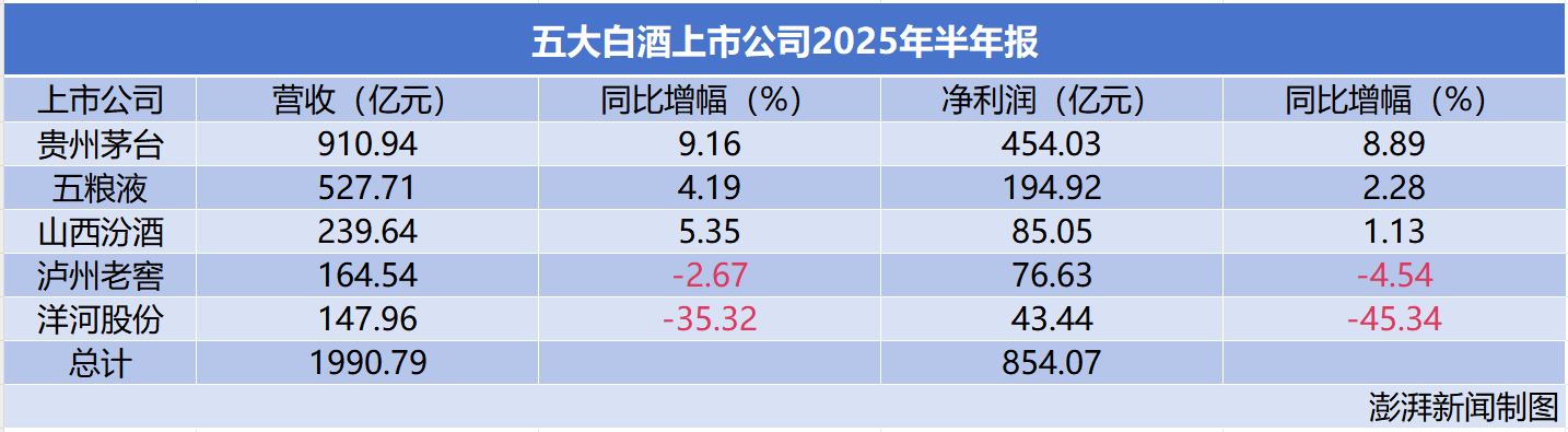 五大白酒公司上半年净利润总计超850亿元,“茅五汾”营收和净利润增速均降至个位数最新配资平台导航,泸州老窖和洋河股份业绩下滑。