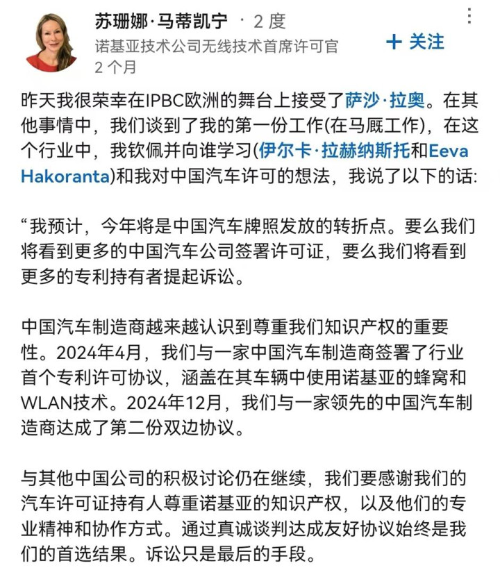 事实上,吉利集团在欧洲被诺基亚起诉,早就有了预兆,在几个月之前,诺基亚方面就对外“吹风”,表示希望和中国车企在相关技术专利层面达成协议,给予这些车企专利授权。如果未能达成协议,那么这些中国车企将遭遇到诺基亚的诉讼!很多小伙伴可能会问,拿什么达成协议?还能是什么,欧元和美刀呗!